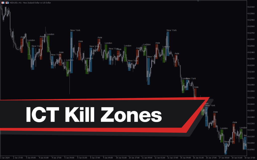 Killzoneها پنجرههای زمانی مشخص و کوتاهی در طول سشنهای معاملاتی (مانند London Open یا New York Open) هستند که بیشترین حجم معاملات و نوسانات را دارند. ICT توصیه میکند تریدرها ستاپهای با احتمال برد بالا را فقط در این زمانهای پرنقدینگی شکار کنند.